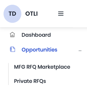 Any private RFQs that come in through the expanded RFQ Intake form MFG provides for paying clients will land in your profile. You can find them under the Opportunities tab in the Private RFQs dropdown.